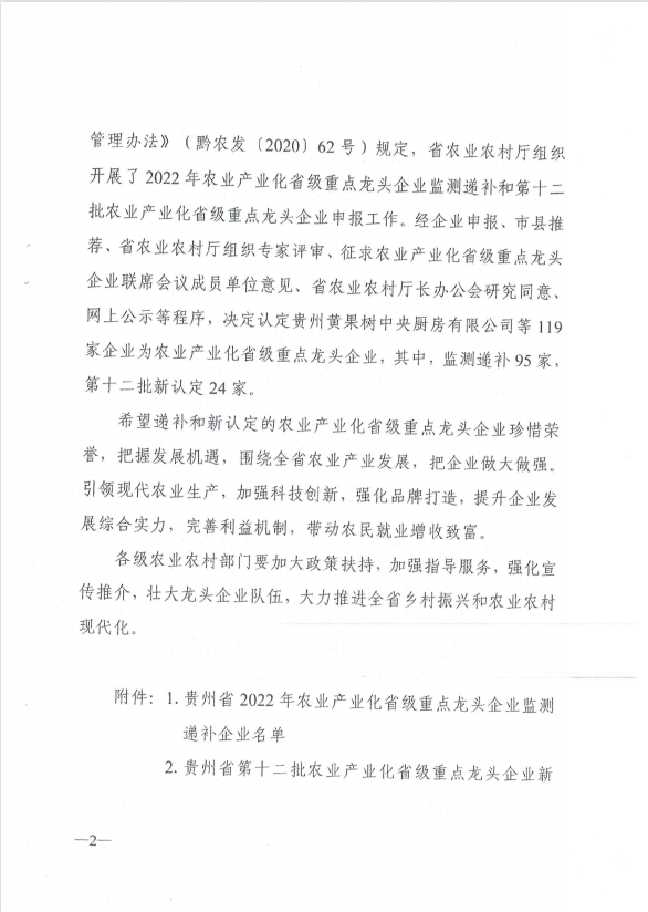 - 貴州省2022年農(nóng)業(yè)產(chǎn)業(yè)化省級重點龍頭企業(yè)文件 2023-02-23