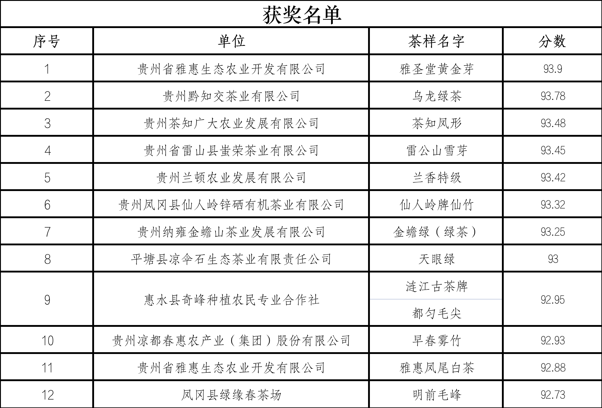 此次活動,最終評出特等獎3名、一等獎9名,其中,貴州省雅惠生態(tài)農(nóng)業(yè)開發(fā)有限公司、貴州黔知交茶業(yè)有限公司、貴州茶知廣大農(nóng)業(yè)發(fā)展有限公司選送的茶樣獲得特等獎。